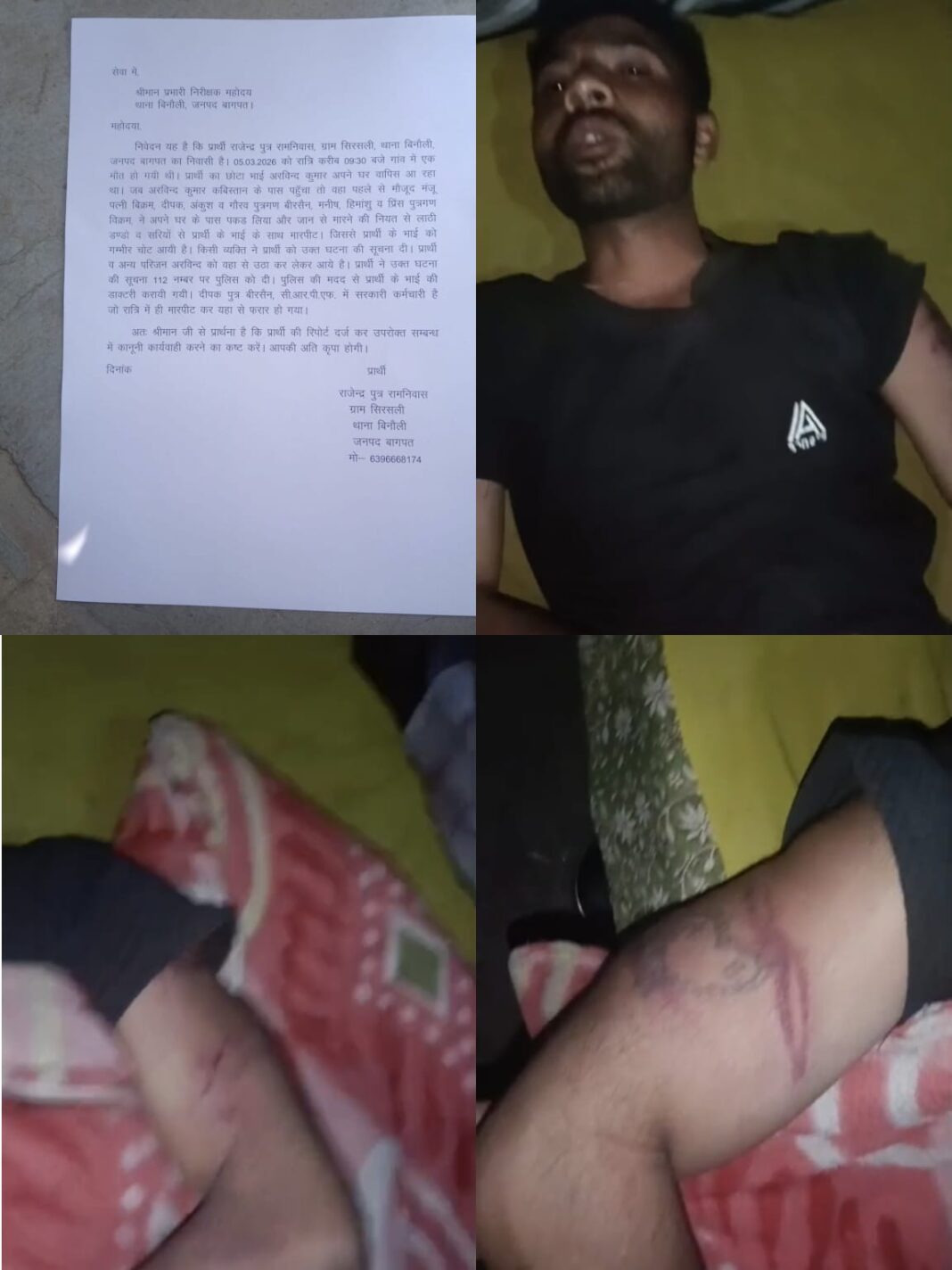 प्राप्त जानकारी के अनुसार सिरसली गांव निवासी राजेन्द्र पुत्र रामनिवास ने थाना बिनौली में दी गई शिकायत में बताया कि 5 मार्च 2026 की रात करीब 9:30 बजे गांव में एक व्यक्ति की मृत्यु होने के कारण लोगों की आवाजाही हो रही थी। इसी दौरान उनका छोटा भाई अरविन्द कुमार अपने घर वापस लौट रहा था। जब वह गांव के कब्रिस्तान के पास पहुंचा, तभी वहां पहले से मौजूद कुछ लोगों ने उसे घेर लिया।