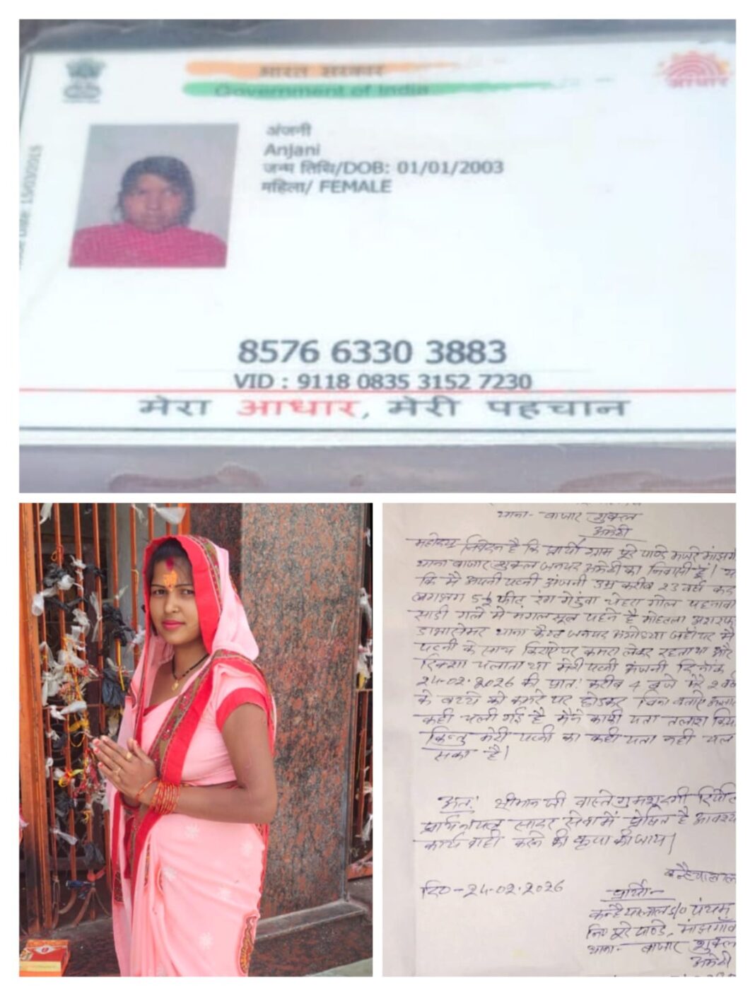 परिजनों के मुताबिक अंजनी की उम्र करीब 23 वर्ष है, कद लगभग पांच फीट, रंग गेहुआं और चेहरा गोल है। वह घर से निकलते समय साड़ी पहने हुए थीं और गले में मंगलसूत्र था। पति कन्हैयालाल का कहना है कि सुबह जब उनकी नींद खुली तो पत्नी कमरे में नहीं थीं। आसपास और रिश्तेदारों में काफी तलाश की गई, लेकिन उनका कोई सुराग नहीं मिला।