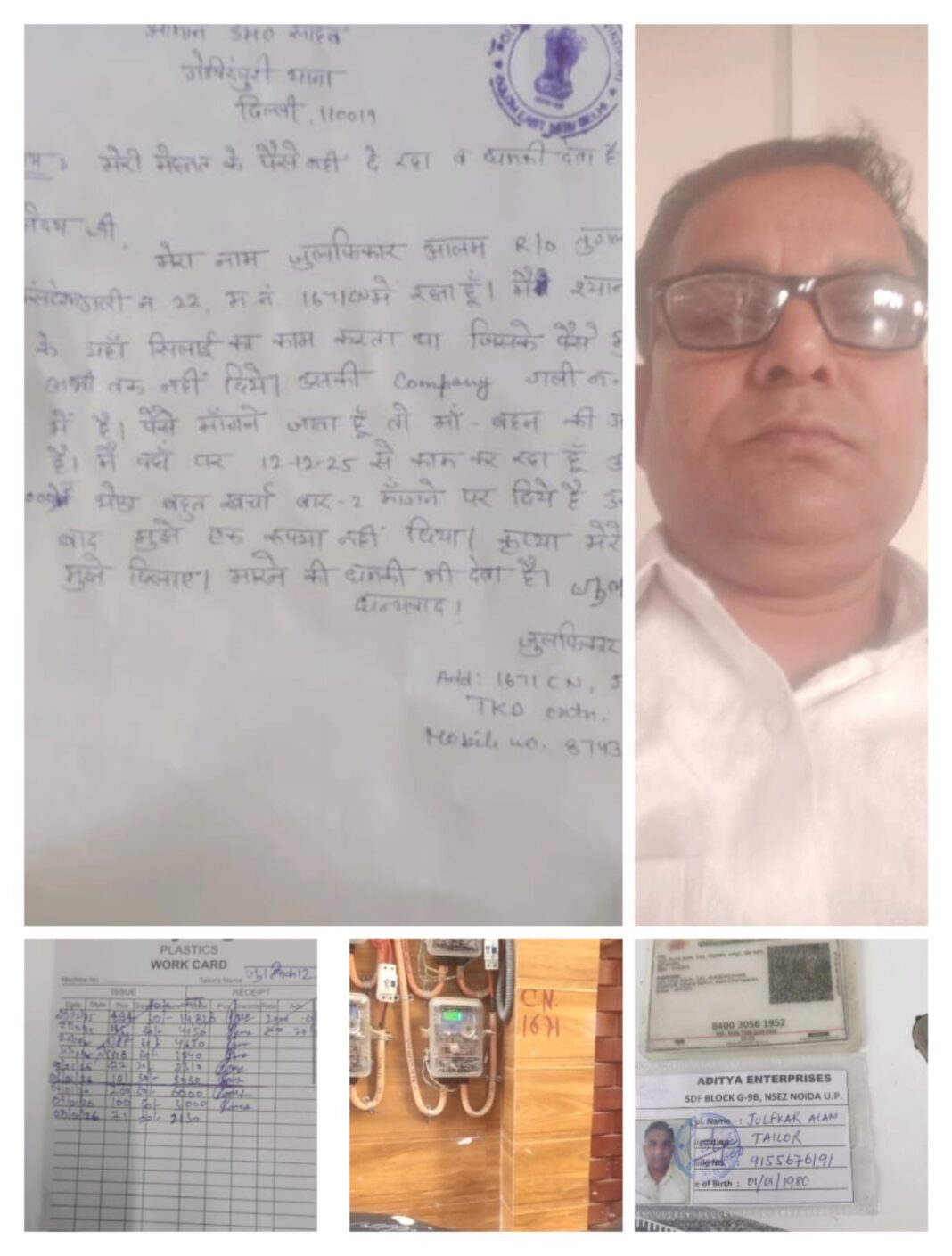 प्राप्त जानकारी के अनुसार जुलफिकार आलम, निवासी तुगलकाबाद एक्सटेंशन गली नंबर 22, मकान नंबर 1671, पिछले कई महीनों से इलाके में स्थित एक सिलाई कंपनी में काम कर रहे थे। जुलफिकार आलम का कहना है कि उन्होंने 12 दिसंबर 2025 से श्याम अरबर नाम के व्यक्ति की कंपनी में सिलाई का काम शुरू किया था। कंपनी तुगलकाबाद एक्सटेंशन की गली नंबर 22 में स्थित है।