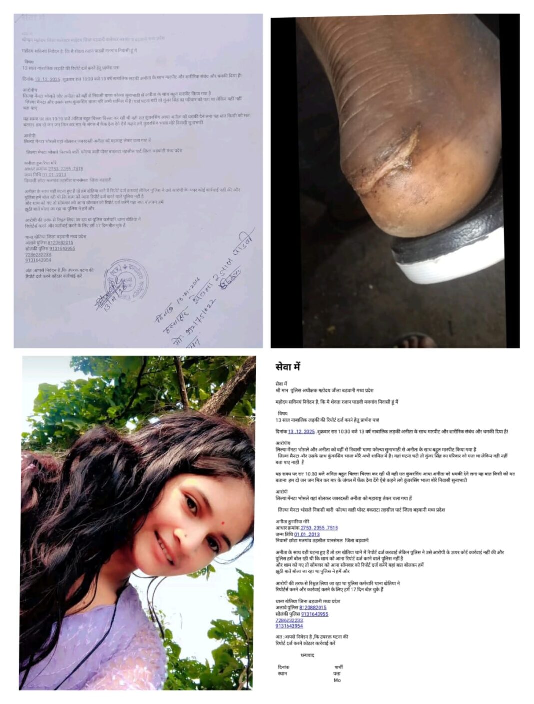 शिकायत में नाबालिग अनीता की जन्म तिथि और पहचान स्पष्ट रूप से दर्ज है, जिससे साफ है कि वह कानूनन पूरी तरह संरक्षित श्रेणी में आती है। इसके बावजूद प्रशासन की चुप्पी और देरी ने मामले को और संवेदनशील बना दिया है। परिवार का कहना है कि हर गुजरते दिन के साथ सबूत मिटाए जा रहे हैं और लड़की की जान को गंभीर खतरा बना हुआ है।