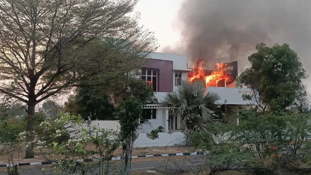 बेल्लारी में भाजपा के विधायक जी जनार्दन रेड्डी के मॉडल हाउस में आग लगने का मामला सामने आया है। आशंका जताई जा रही है कि कांग्रेस विधायक भरत रेड्डी के समर्थकों ने इस घटना को अंजाम दिया है। हाल ही में दोनों विधायकों के समर्थकों के बीच झड़प हुई थी। मामले की जांच की जा रही है।बेल्लारी: कर्नाटक के बेल्लारी में हाल ही में भाजपा और कांग्रेस के समर्थकों के बीच हुई झड़प अब हिंसक रूप लेती दिख रही है। यहां बेल्लारी में शुक्रवार को गंगावती विधायक और पूर्व मंत्री जी जनार्दन रेड्डी के स्वामित्व वाले मॉडल हाउस में आग लगने की खबर सामने आई है। घटना के समय जनार्दन रेड्डी विधानसभा के विशेष सत्र में भाग लेने के लिए शुक्रवार को बेंगलुरु में थे। उनके करीबी सहयोगियों के अनुसार, उन्होंने घटना की सूचना मिलने के तुरंत बाद बेल्लारी जाने का फैसला किया। उन्होंने बेल्लारी के पुलिस अधीक्षक से भी बात की और आग के बारे में जानकारी मांगी।