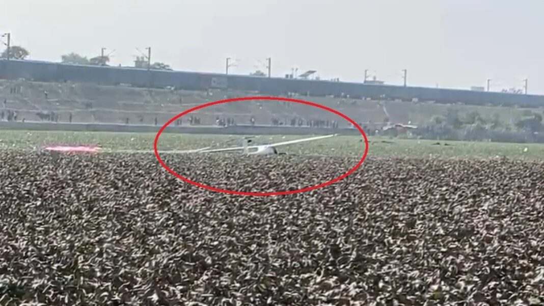एयरफोर्स का माइक्रोलाइट एयरक्राफ्ट था। इंजन फेल होने की वजह से तालाब में एयरक्राफ्ट गिरा। हवा में काफी देर तक घूमता रहा और फिर तालाब में गिर पड़ा। दो क्रू मेंबर थे। सेना के मुताबिक दोनों सुरक्षित हैं।