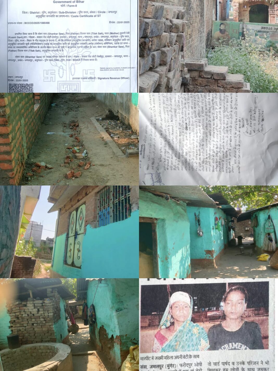 मुंगेर (बिहार)। जिले के जमालपुर थाना क्षेत्र के छोटी केशोपुर वार्ड संख्या 32 से एक गंभीर मामला सामने आया है, जहां एक अनुसूचित जनजाति परिवार ने आरोप लगाया है कि दबंग पड़ोसियों द्वारा उनके घर तक आने-जाने का रास्ता बंद कर दिया गया है। इतना ही नहीं, बिजली, पानी और नाली जैसी बुनियादी सुविधाओं से भी परिवार को वंचित कर दिया गया है। पीड़ित परिवार का कहना है कि उनका घर सरकार की आवास योजना के तहत बना है, लेकिन रास्ता बंद होने के कारण वे किसी भी सरकारी सुविधा का लाभ नहीं ले पा रहे हैं।