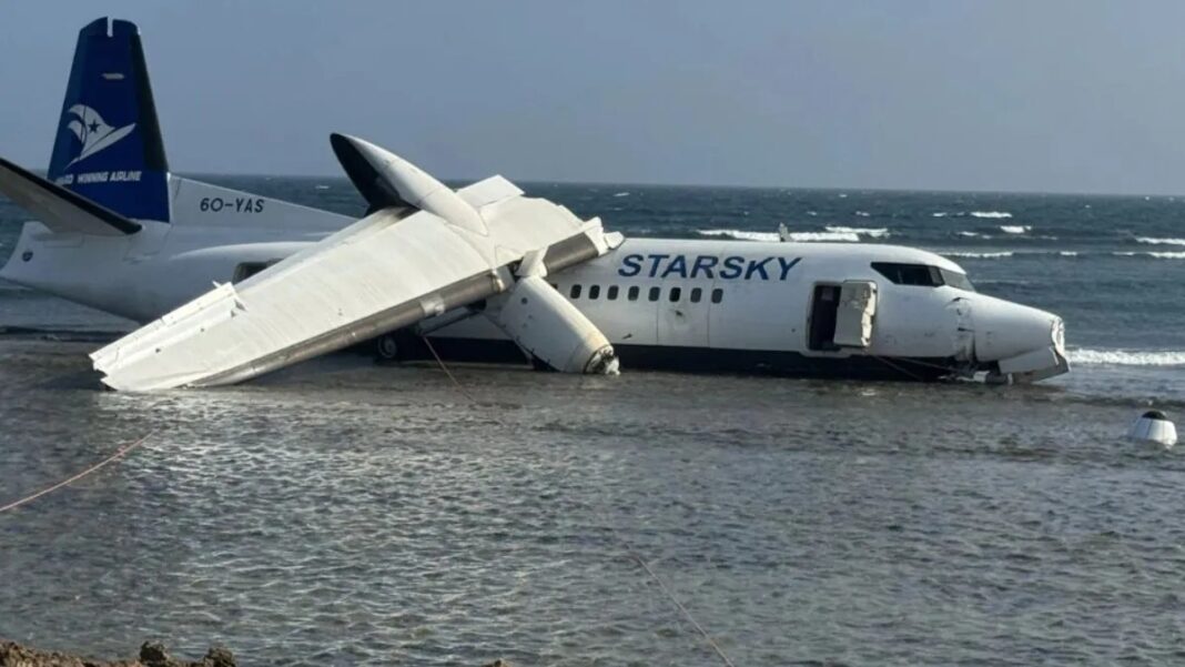 बताया जा रहा है कि तकनीकी खराबी के चलते यह विमान रनवे से फिसलकर भारतीय महासागर के उथले पानी में जा गिरा, लेकिन सभी 50 यात्रियों और 5 क्रू सदस्य सुरक्षित बच गए। किसी की मौत या गंभीर चोट नहीं आई। सोमालिया की सिविल एविएशन अथॉरिटी के अनुसार, स्टार्स्की एविएशन का फॉकर 50 विमान (रजिस्ट्रेशन 6O-YAS) मोगादिशु से उत्तरी शहर गलकायो जा रहा था। टेकऑफ के लगभग 15 मिनट बाद तकनीकी समस्या आने पर पायलट ने वापस लौटने की अनुमति मांगी।