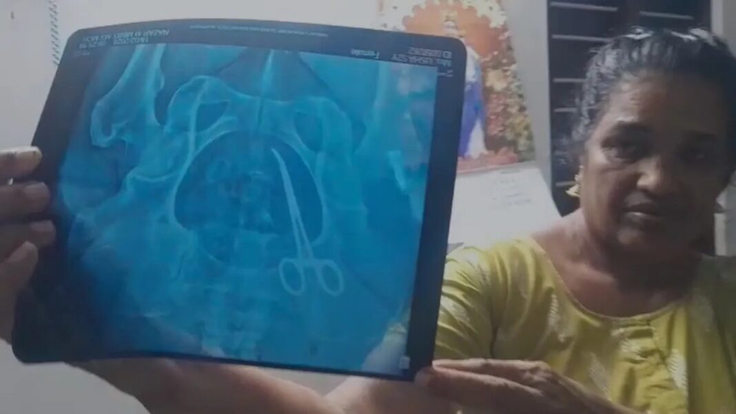पांच साल पहले हुए ऑपरेशन के बाद लगातार पेट दर्द की शिकायत से महिला परेशान थी। जब पेट का सीटी स्कैन कराया गया तो पता चला डॉक्टर ने ऑपरेशन के दौरान कैंची पेट में ही छोड़ दी थी।केरल के आल्लपुझा से एक चौंकाने देने वाली खबर सामने आई है, पिछले पांच सालों से रह रहकर पेट में दर्द की शिकायत कर रही महिला ने जब दर्द से तंग आकर चैक करवाया तो पता चला कि सर्जरी के लिए इस्तेमाल की जाने वाली कैंची उसके पेट के अंदर ही पड़ी थी। महािला को शक है कि एक सरकारी अस्पताल में पांच साल पहले हुई उसकी पेट की सर्जरी के दौरान डॉक्टर से ऑपरेशन करने वाली कैंची मरीज के पेट में ही छूट गई होगी। इस मामले का खुलासा होने के बाद राज्य की स्वास्थ्य मंत्री वीणा जॉर्ज ने मामले को गम्भीर लापरवही बताया है और इसकी पूरी सख्ती से जांच का आदेश देते हुए मेडिकल अधिकारियों की एक टीम को वन्दनम सरकारी मेडिकल कॉलेज भेजा है, जहां पर ये लापरवाही बरती गई थी।